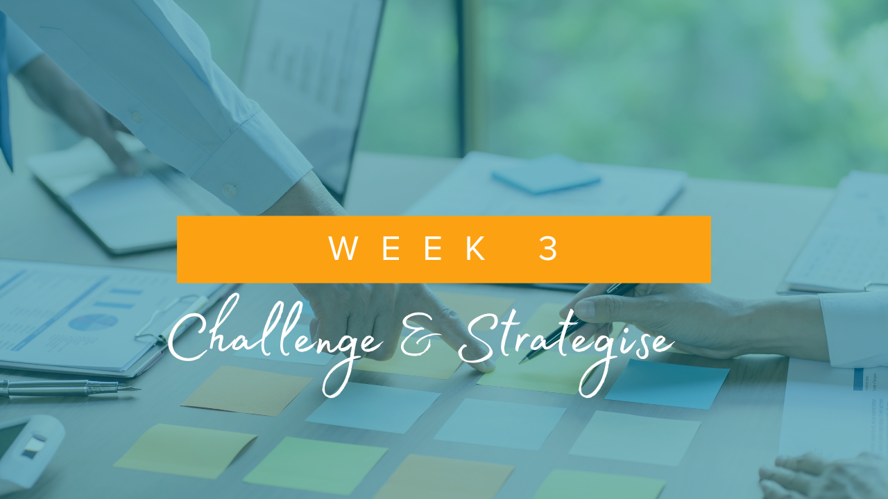 Week 3 is about shifting gears from busy to intentional. Cut through the noise, take control of your time, and get visible. You’re building lifetime habits of a powerful, effective leader & woman.